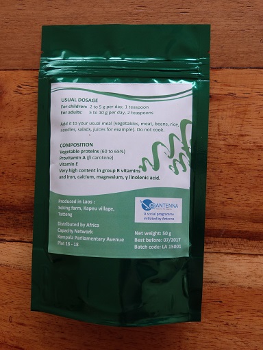 Premiers sachets de spiruline enfin disponibles pour le marché ougandais :